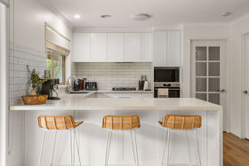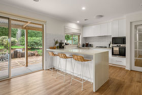 The dining area sits alongside the living space and enjoys a lovely outlook over the rear garden, making everyday meals and entertaining feel relaxed and connected to the outdoors. At the heart of the home, the newly renovated kitchen has been thoughtfully designed with crisp white cabinetry, stone benchtops, a gas cooktop and electric oven. Positioned to overlook both the dining space and backyard, it's a kitchen that allows you to stay connected with family, guests or kids playing outside.