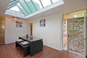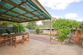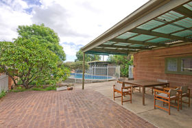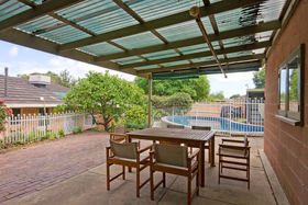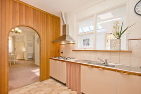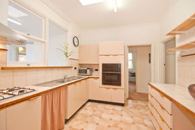 From the entrance hall we enter a lounge room with parquetry flooring and a gas heater; then through to a very extensive dining room with a study area nearby. Five bedrooms and two bathrooms will accommodate a large family. The kitchen overlooks a light and bright sunroom that would make an excellent childrens playroom or just a pleasant area to relax.
